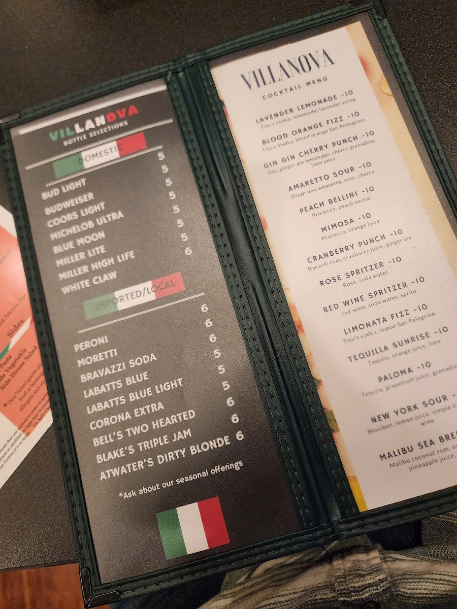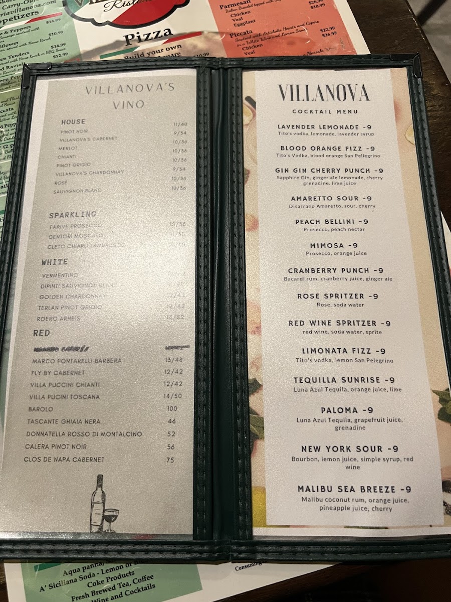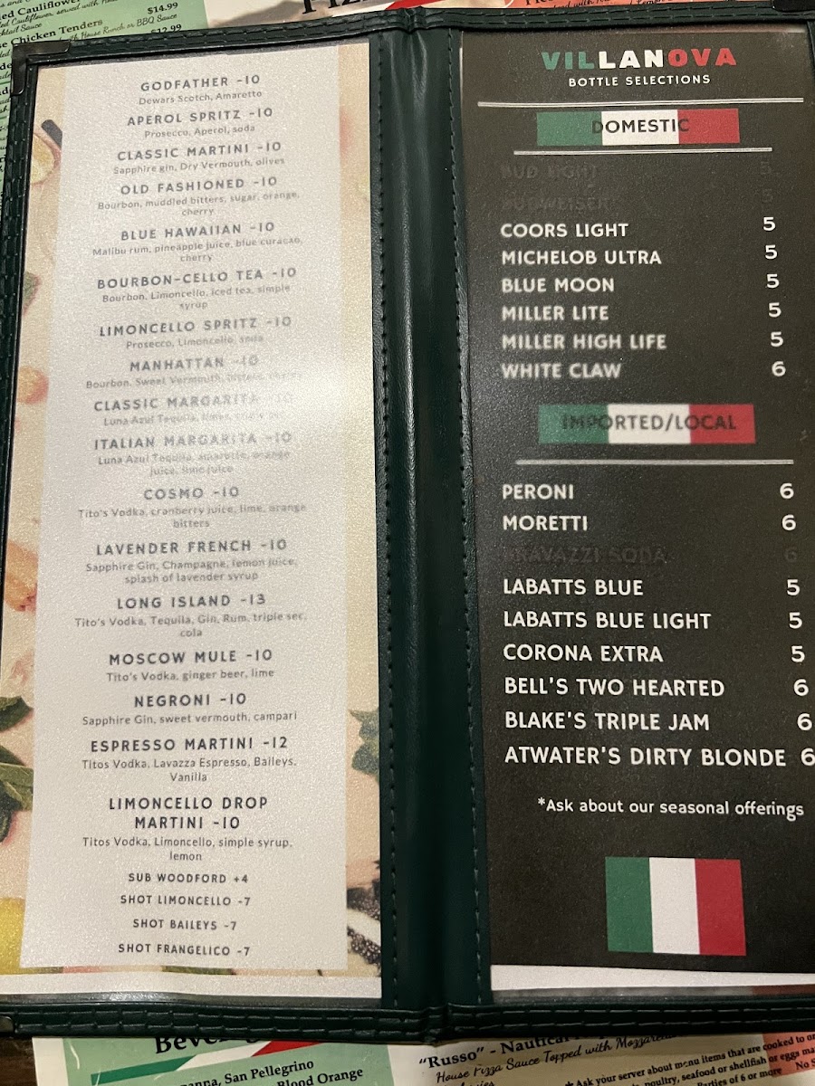 Licavoli's VILLANOVA PIZZERIA & RISTORANTE Menu